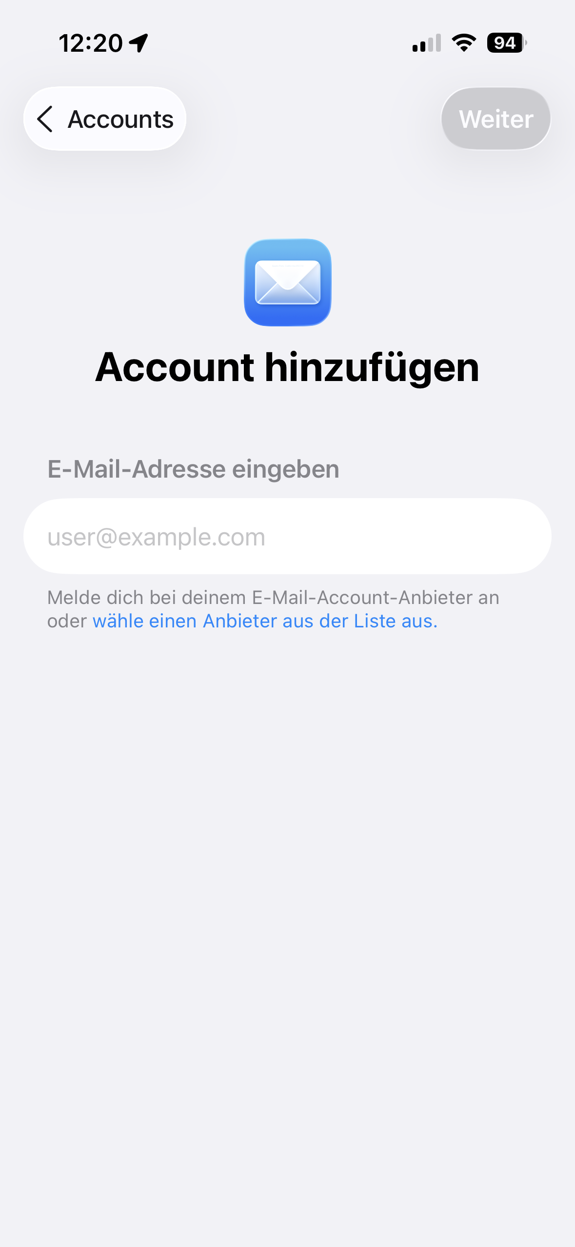 Tippen Sie auf “Anderen Account hinzufügen…” und dann auf “Mail-Account”