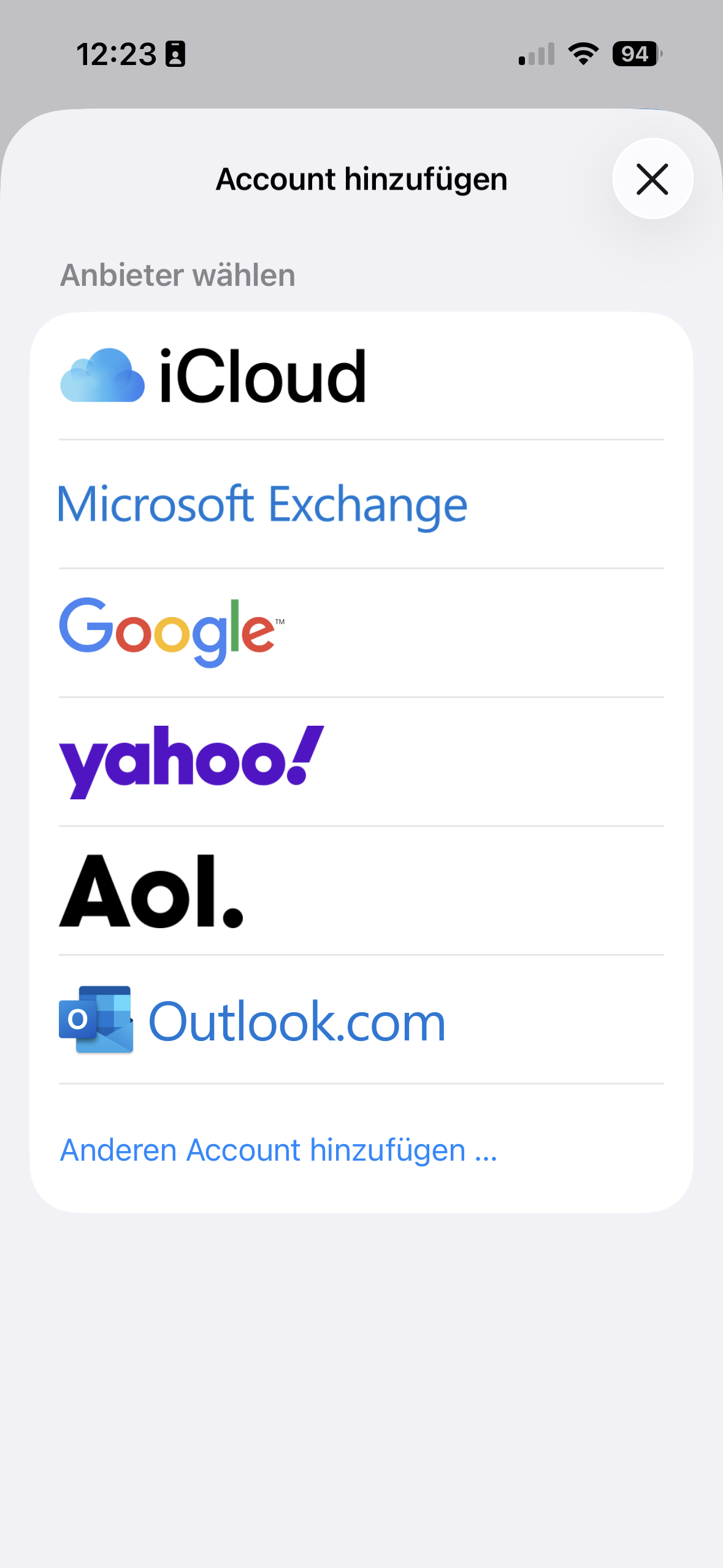 Es erscheint ein Popup, in welchem Sie “Anderer Mail-Account” auswählen.