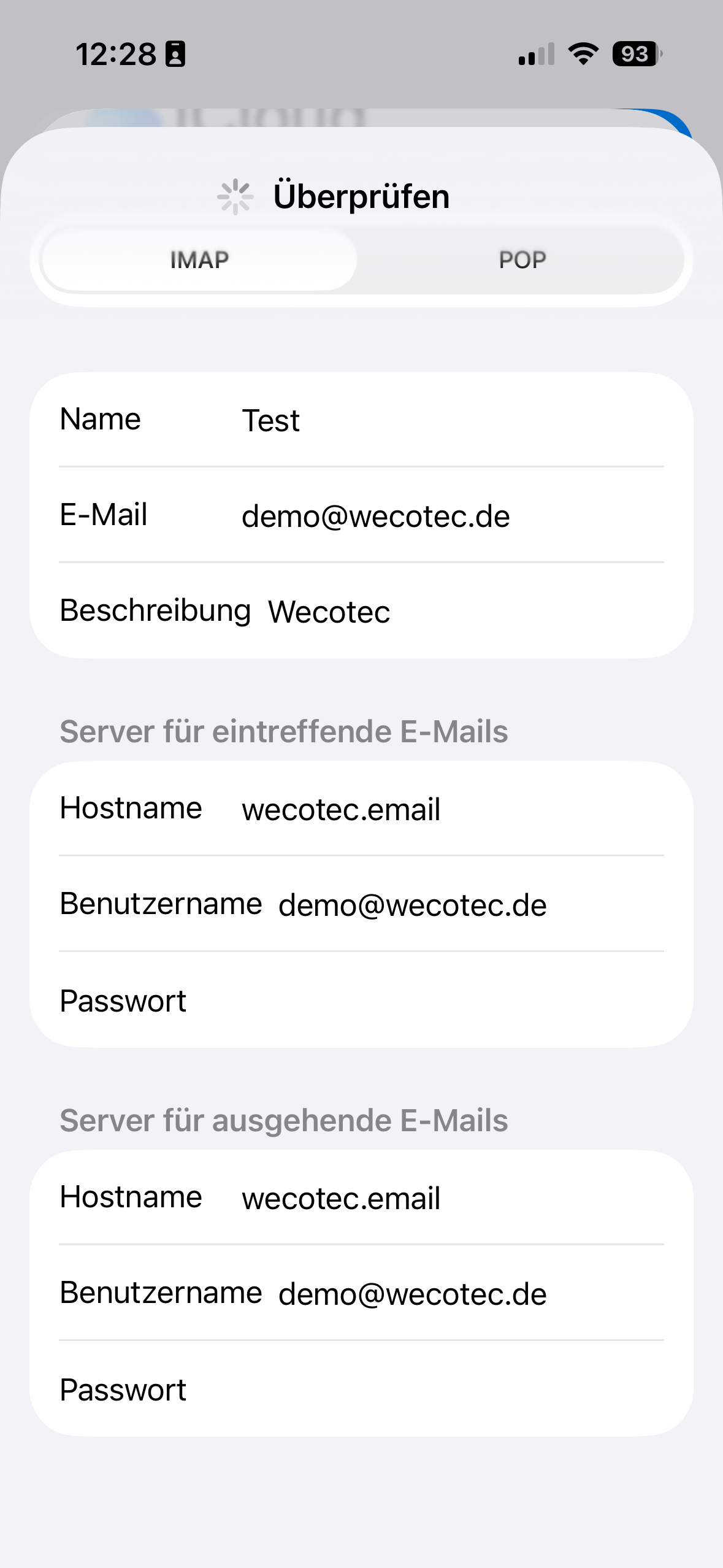 Posteingangsserver (IMAP / POP3): "wecotec.email"