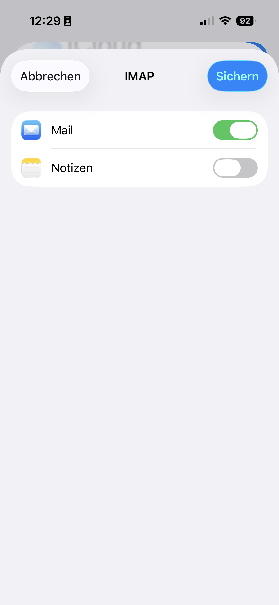 Nun sehen Sie, dass automatisch ein IMAP-Konto hinzugefügt wurde. Unten muss nun noch auf "Vorgang abgeschlossen” angeklickt werden. Somit ist Ihre Einrichtung abgeschlossen
